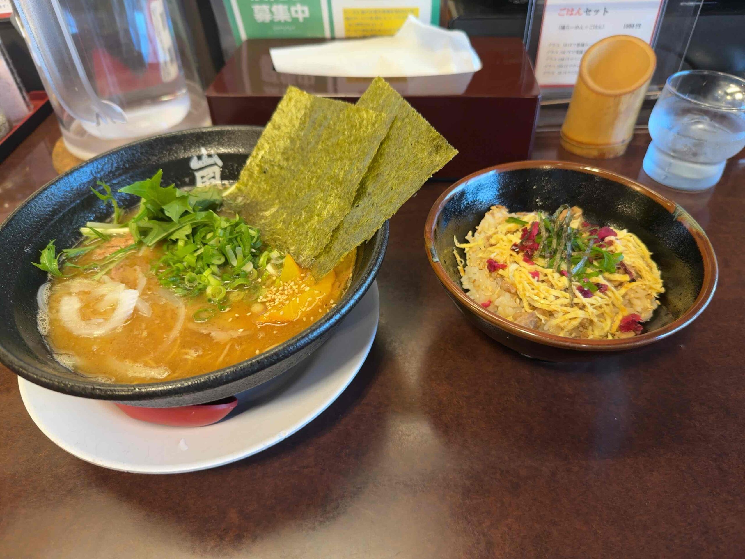 影嵐らーめん(魚だし醤油とんこつ)とミニ嵐丼の嵐セットです!
